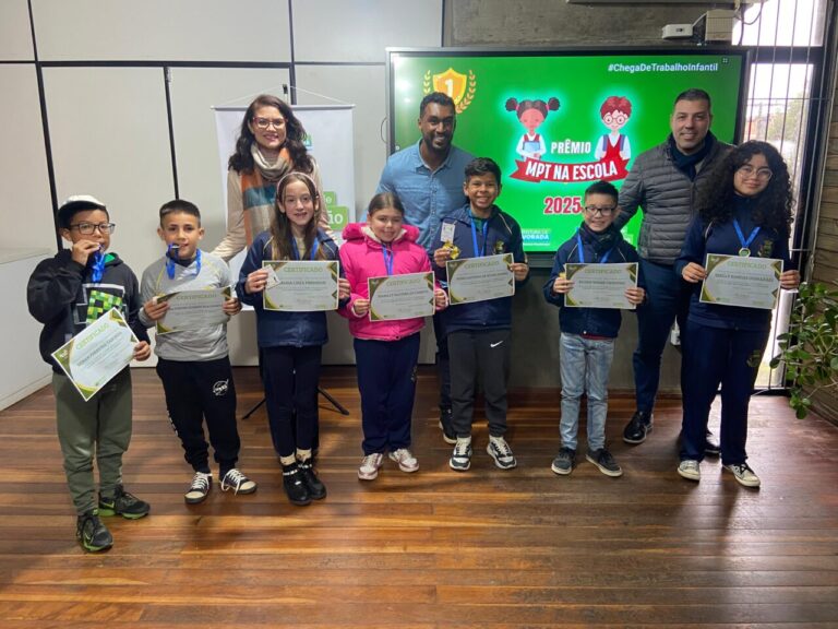 Alunos e escolas da rede municipal de ensino fundamental de Alvorada receberam, nesta quinta-feira (17), os troféus da primeira etapa do Prêmio MPT na Escola, promovido pelo Ministério Público do Trabalho (MPT), em parceria com a Secretaria de Educação (SMED). Os estudantes de 4º e 5º ano foram reconhecidos pelos seus trabalhos artísticos e literários sobre o combate ao trabalho infantil. A cerimônia aconteceu no auditório da SMED. Para o secretário de Educação, Italo Mainieri, o reconhecimento reforça o compromisso das escolas municipais com a formação cidadã dos alunos. “Além de premiar talentos, esse projeto contribui para a conscientização das crianças sobre a importância do combate ao trabalho infantil”. Aluno do 4º ano, Elijah Weber Vicentini, vencedor da categoria Contos, gostou de participar. “Eu aprendi que não se pode deixar as crianças trabalharem e elas devem ir para a escola aprender”. Orgulhoso, o pai Jaury Vicentini, ressalta a importância de entender o que é trabalho infantil desde as séries iniciais. “Lugar de criança não é trabalhando, mas sim na escola. Esse ensino primário tem que ser focado em aprendizagem. A criança identificando o que é trabalho infantil não vai cair nessa cilada”, explicou. A professora da EMEF Cecília Meirelles, Aline Aguirre, explicou que o estudo da temática envolveu vídeos e diferentes atividades. “As crianças também têm o direito de ter lazer, de brincar. Muitas vezes eles vão trabalhar e acabam não tendo esse tempo pra isso, para viver a fase infantil”, acrescentou. As produções vencedoras avançam para a etapa estadual da premiação, quando serão avaliadas por uma comissão julgadora do MPT. Os trabalhos que conquistarem o 1º lugar em cada categoria representarão o Rio Grande do Sul na etapa nacional, com previsão de anúncio dos vencedores até 12 de outubro de 2025. Confira todos os vencedores da etapa municipal: Conto Elijah Weber Vicentini – EMEF Cecília Meirelles Poesia Isabelly Silveira de Campos e Pedro Antônio de Souza Gomes – EMEF João Carlos de Villagran Cabrita Música Alysson Gomes Machado, Maria Luiza Predebon e Renan Ferreira Taborda – EMEF Padre Léo Seidel Desenho Emilly Bandas Guimarães – EMEF Vereador Vaguenir Manoel de Fraga Texto: Nathália Ely