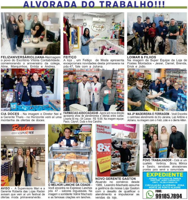 Aline, Mari, Vivi, Cris, Carol e Rodrigo A loja localizada na Av. Zero Hora, 1450, Jardim Algarve, sob direção do casal Rodrigo e Cris Dell´Osbell, especialistas em esquadrias e pisos, conquistaram a simpatia e a fidelidade de centenas de clientes da cidade e região metropolitana. No mês de fevereiro, a União apresenta uma seleção de ofertas, vale a pena conferir. Ligue: 3191.7130